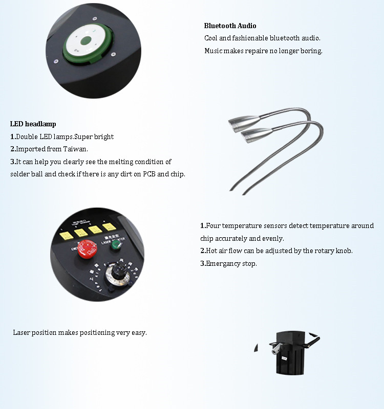 Машина за преработка на ipad bga със сензорен екран 1. Бърз преглед: Основни характеристики Доставяме машина за преработка на bga DH-B2 с по-добра производителност. Най-големите характеристики на този модел е неговата уникална bluetooth функция, която може да свързва телефона и друга забавна машина за възпроизвеждане на музика. Ние гарантираме 100 процента QC...